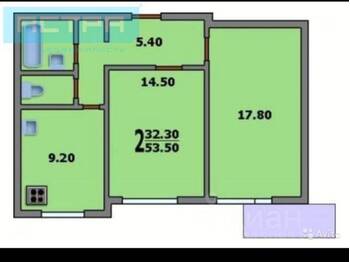 Общая площадь: 53.5