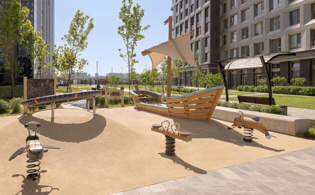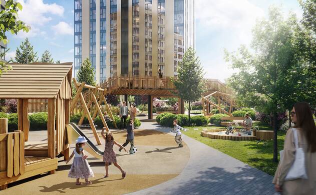 ЖК ÁLIA от девелопера Asterus – результат работы легендарного бюро Skidmore, Owings & Merrill (SOM), создателя дубайской башни Burj Khalifa. Проект реализует концепцию "жилья-хамелеона", где фасады из композитных алюминиевых панелей меняют оттенки в зависимости от освещения – от песочного на рассвете до терракотового на закате. Четыре корпуса первой очереди образуют "архитектурные ворота" в жилой район, а переменная этажность (7-28 этажей) создает динамичный силуэт, повторяющий естественный рельеф бывшего Тушинского аэродрома.