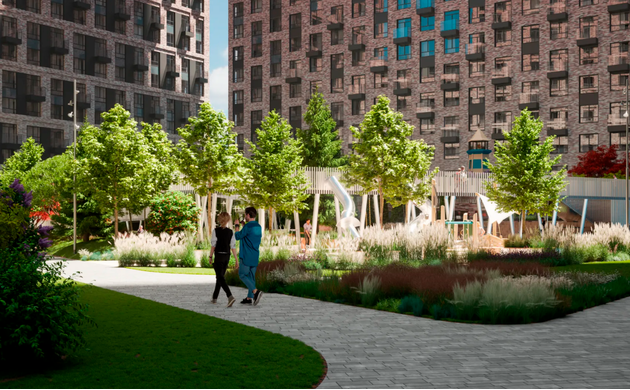 - Двухуровневый двор: Амфитеатр, лаунж-зона с гамаками, игровой комплекс "морская тематика" с 280 м² песочницы