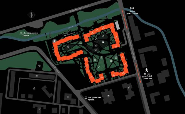 - Метро: «Тушинская» – 15 мин пешком, «Трикотажная» – 16 мин пешком
