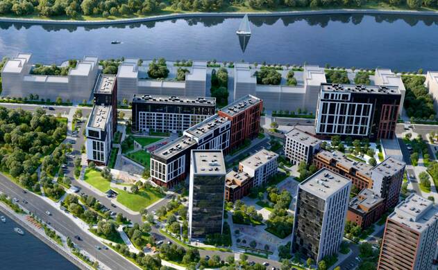 Ключевой принцип проекта – концепция «город в городе», направленная на создание автономной, самодостаточной среды для жизни и работы. Низкая плотность застройки и переменная этажность (от 5 до 34 этажей) формируют гармоничное пространство, а панорамное остекление открывает жителям впечатляющие виды на Москву-реку и город.