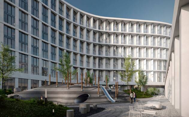 - Паркинг: Подземный паркинг на 301 место с зарядками для электромобилей и велопарковками