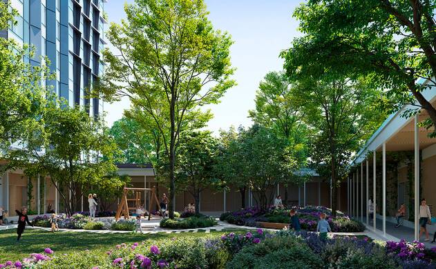 - Развитая инфраструктура: Собственные детский сад и школа, коммерция на первых этажах, иммерсивное благоустройство от Gillespies