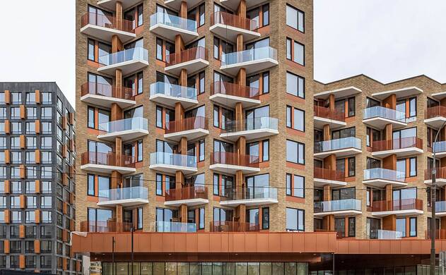 - Архитектура: Уникальные фасады с мотивами сосновой шишки, отделка фибробетоном, клинкерным кирпичом, медными и бронзовыми панелями