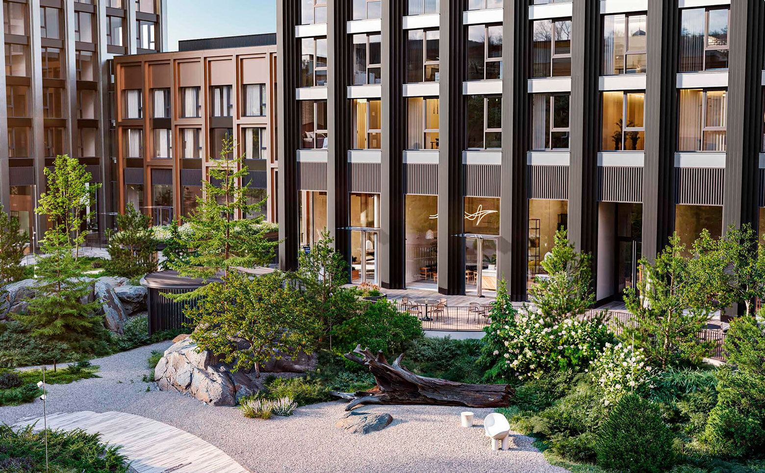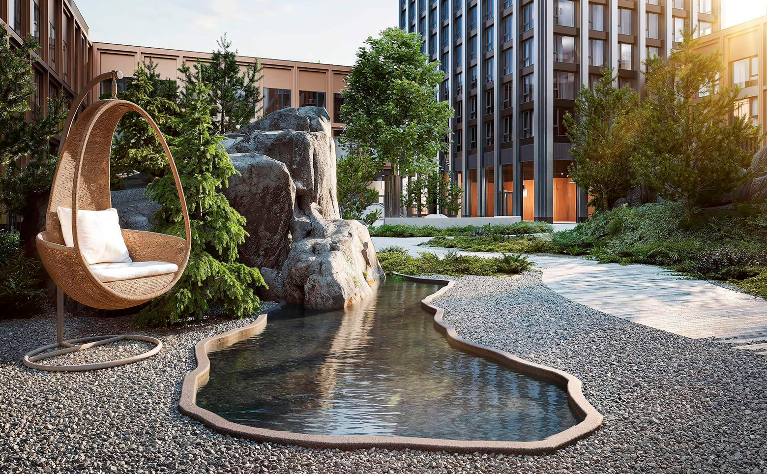 Ключевой принцип проекта – создание гармоничной среды с развитой собственной инфраструктурой, закрытыми зелеными дворами и современными общественными пространствами. В комплексе представлено 1281 квартира – от студий 22 м² до просторных шестикомнатных резиденций 120 м².