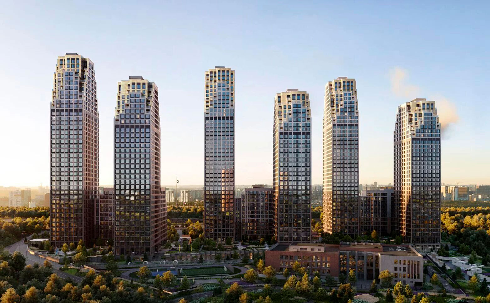 Ключевой принцип проекта – создание автономной среды премиум-класса с развитой инфраструктурой и закрытыми благоустроенными территориями. В комплексе представлено 2448 квартир – от студий 29 м² до шестикомнатных резиденций 174 м² и пентхаусов.