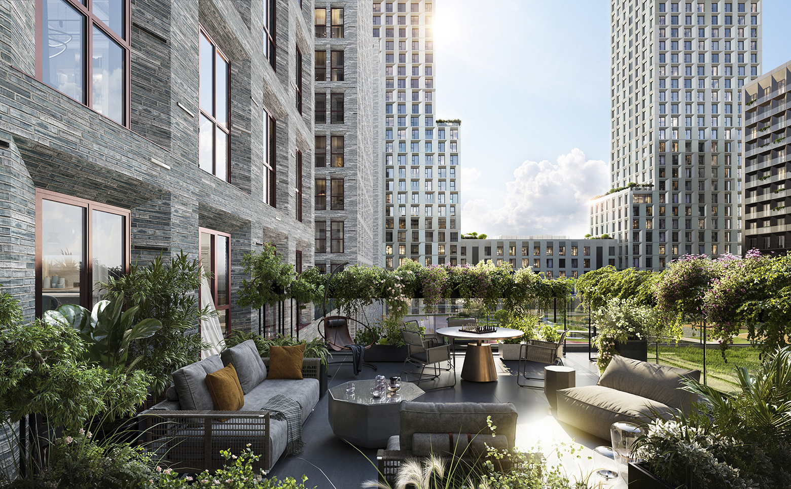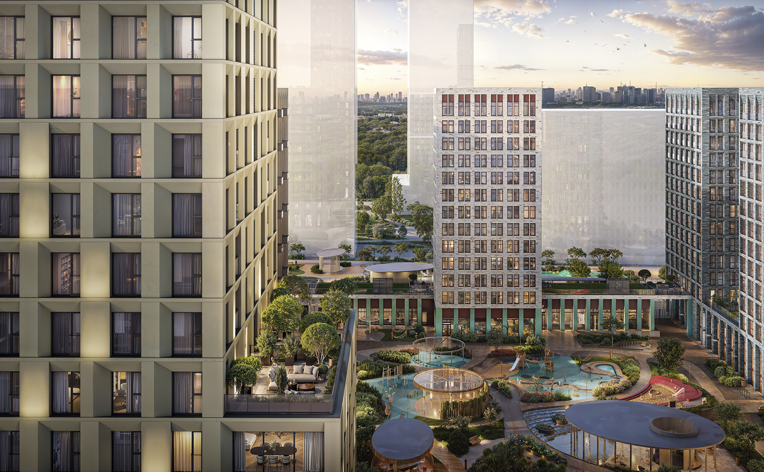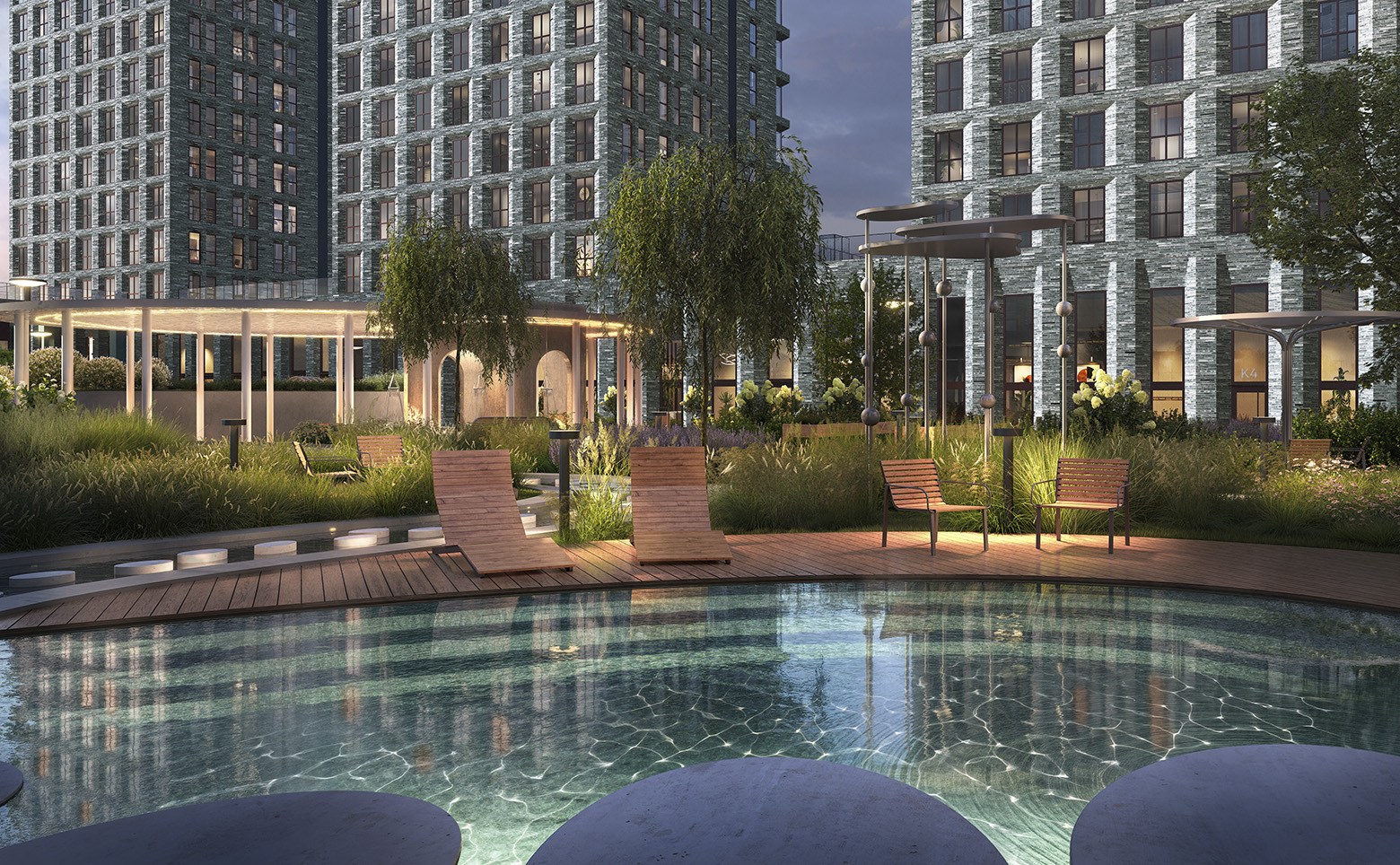 Ключевой особенностью проекта являются продуманные общественные пространства: дизайнерские гранд-лобби превращены в коммьюнити-центры с коворкингом, переговорными, библиотекой, кинозалом и лаунж-зоной с камином.