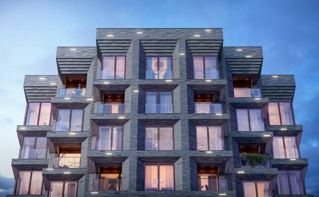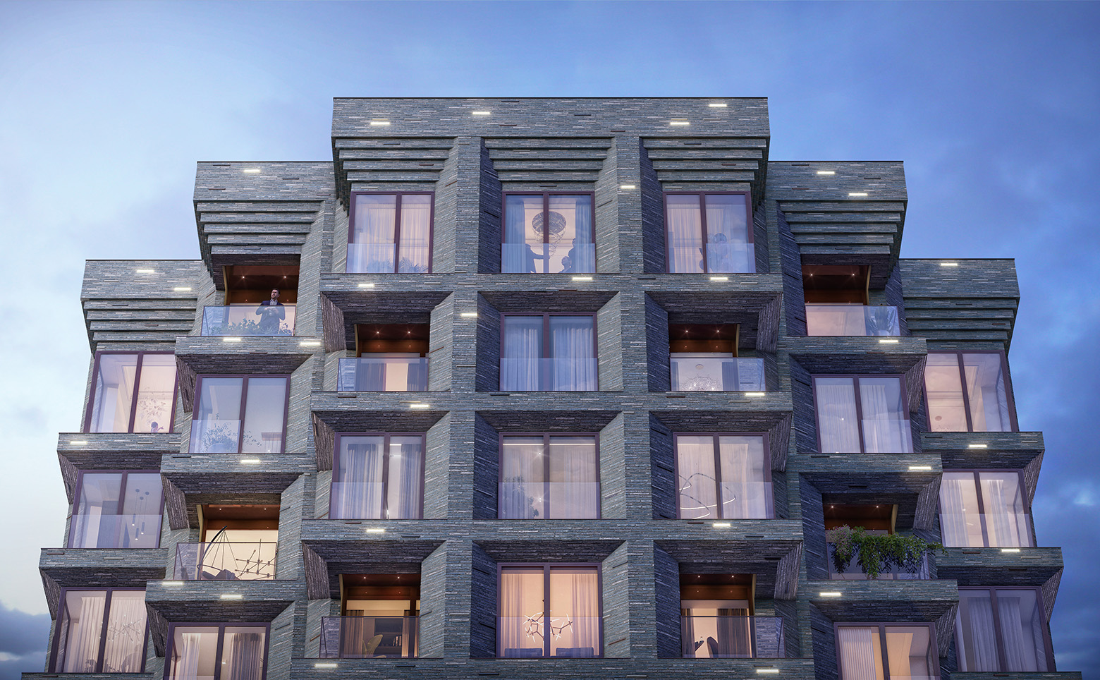 - Уникальная архитектура: Проект от бюро Saga с запоминающимися фасадами из аквамаринового кирпича