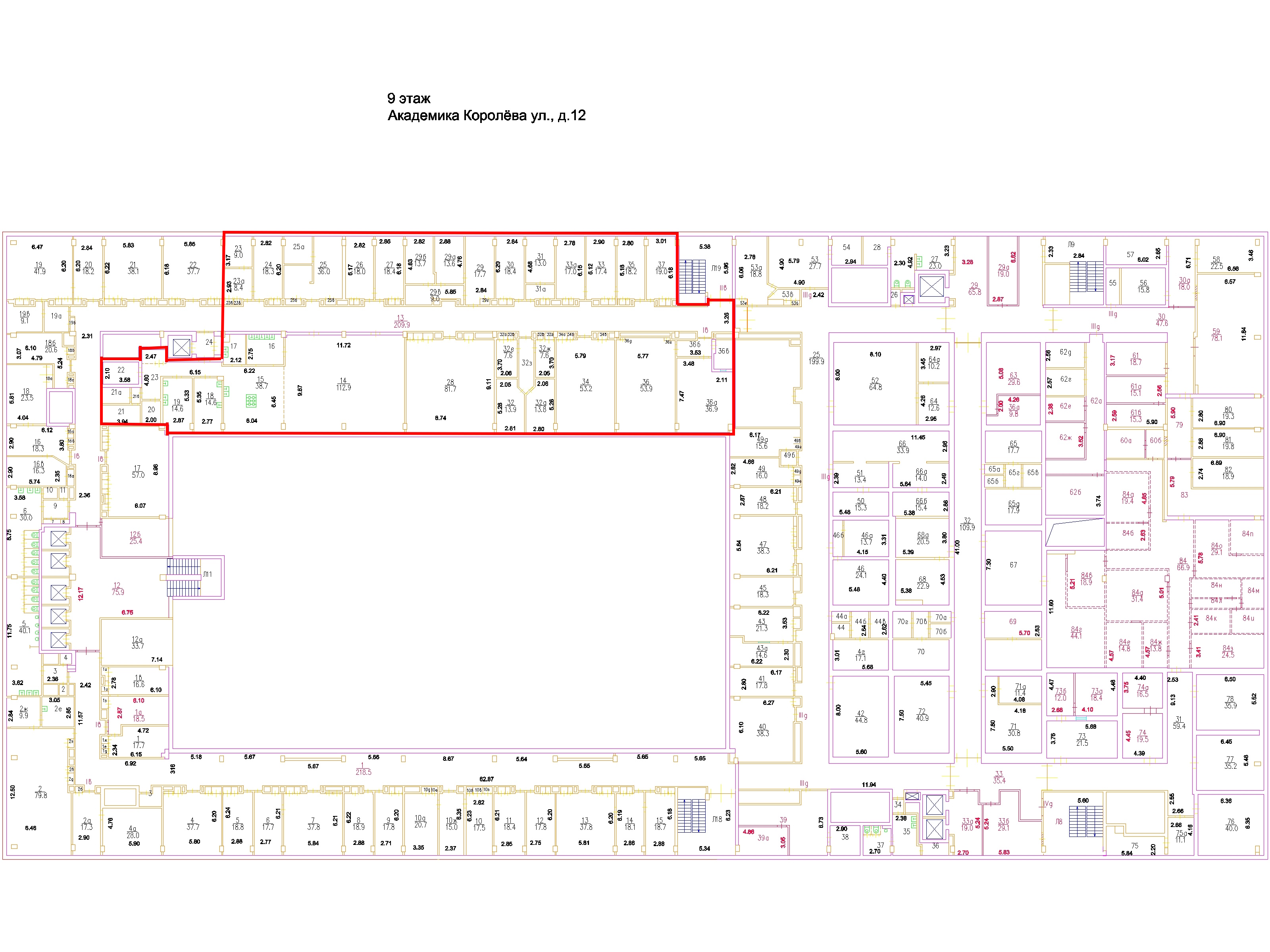Количество рабочих мест: 137, Этаж блока: 9